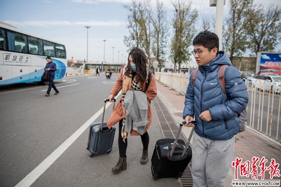 11月17日,北京南苑机场,盛洁(女)和同学拖着行李,准备乘飞机回汉中参加学校的结课考试。考试结束后,她不打算再回北京。实习期间她租住在三环外一间提供短租服务的群租房,两室一厅里居住着近25名租客。她说,那里卫生条件恶劣,租客间常因生活琐事发生矛盾。她下班后会在地铁站内提前上厕所,回去后尽量不使用出租屋的卫生间。