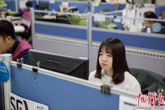 11月13日,位于CBD的一家国际市场研究公司内,刘晔晖在电脑前工作。这里的实习生大多来自名校,他们的专业技能却并非公司考量的首要因素。她说,实习生的主要工作是对报告PPT进行美化、协助检索数据等。
