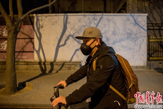 10月30日晚11点,下班后的傅馨怡步行回出租屋。日语专业的她选择通过实习来确定自己的发展方向。没有晚班的时候,她会留在办公室自学统计学和推荐系统。此前没离开过家乡天津,现在她却希望留在北京发展。