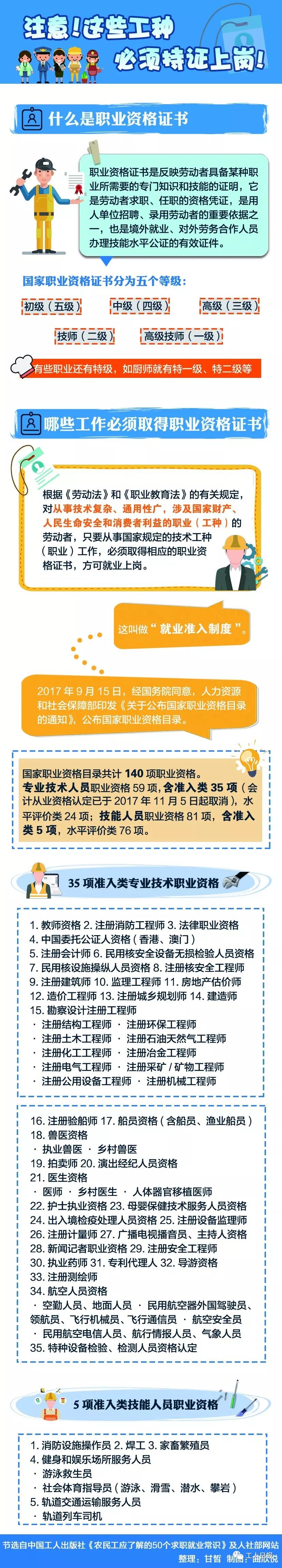 毕业生们注意了!根据国家职业资格目录,准入类专业技术人员职业资格仍有35项,准入类技能人员职业资格仍有5项。这也意味着,仍有40项职业需要“先考证,再上岗”。