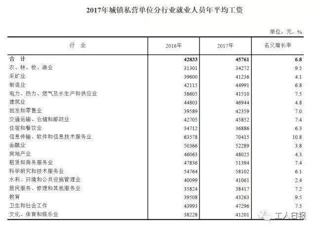 5月15日,国家统计局发布的2017年城镇单位就业人员平均工资主要数据: