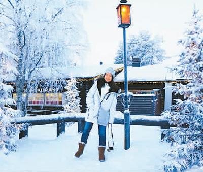 图为2017年圣诞节,张一诺在芬兰罗瓦涅米的圣诞老人村游玩。
