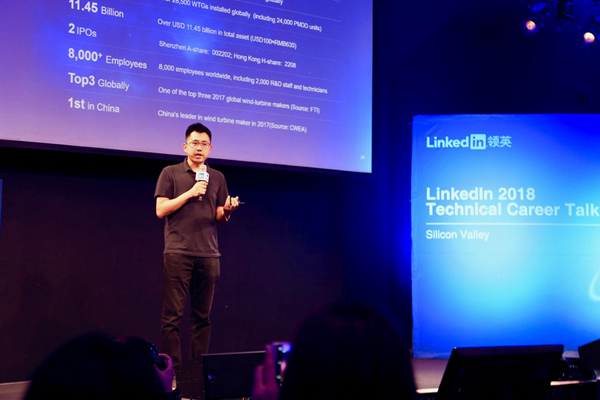 金风科技代表在领英海外人才招聘活动上进行宣讲。人民网 张洁娴 摄