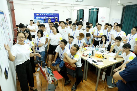7月22日,2018年全国大学生创业实训营第二期营员在KAB创业教育培训师、宁波大学植物园校区管委会副主任俞金波和KAB创业教育高级培训师、沈阳建筑大学创新创业中心副主任代岩岩的带领下进行了商业模式画布与创业实战指导专题培训。肖为何/摄