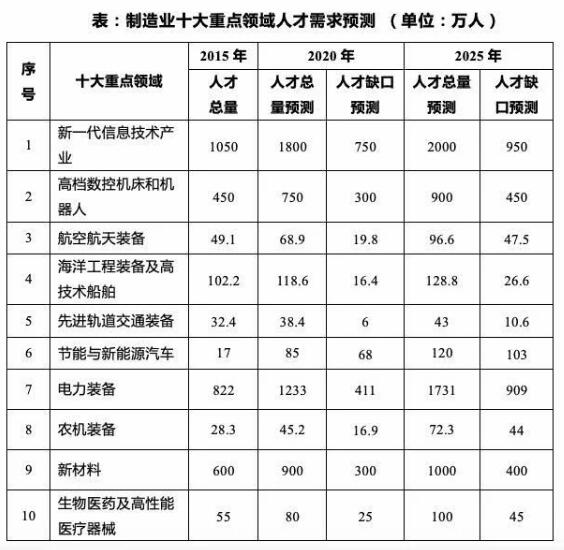 数据来源:教育部、人力资源和社会保障部、工业和信息化部2017年联合印发的《制造业人才发展规划指南》