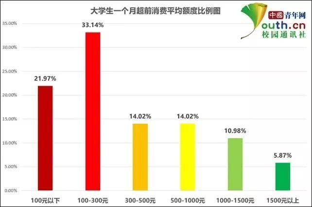 和张乾类似的学生不在少数。调查数据显示,69.13%的受访学生每月超前消费额度控制在500元以下,16.85%的受访学生超过了1000元。