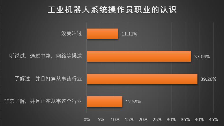 5、【职业认识】从业工作人员中39.26%对工业机器人系统操作员新职业是了解过的,并且打算和愿意从事该项职业。