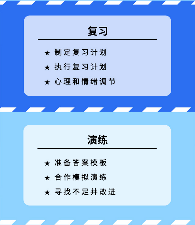 想必大家都有这样的体验,事前你的准备越充分,临场时你就越自信,当你越自信,你的发挥就会越好,信心越高,这是一个正向循环。所以,想要在临场时消除紧张、树立自信、保持心态平衡,除了学会自我调节,最重要的还是要有实力,要准备充分,所谓“胸有成竹”。针对这方面,我们给大家提供了一些方向性的东西,希望能对大家的复习备考有所启发。