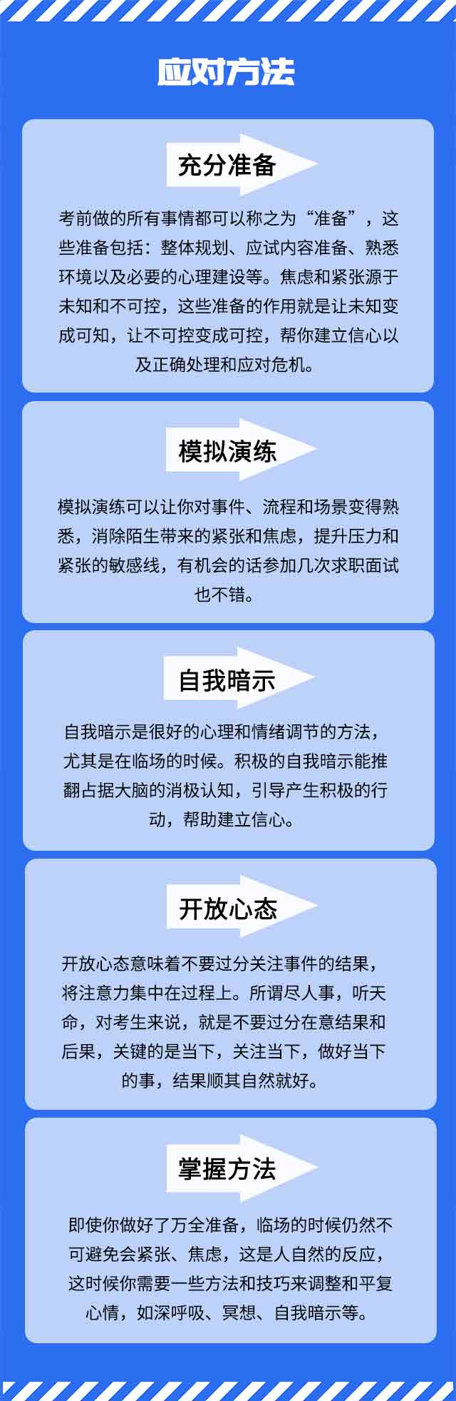 我们就应试时一些常见的情绪心态和调整方法做了总结,希望对大家能有所帮助。